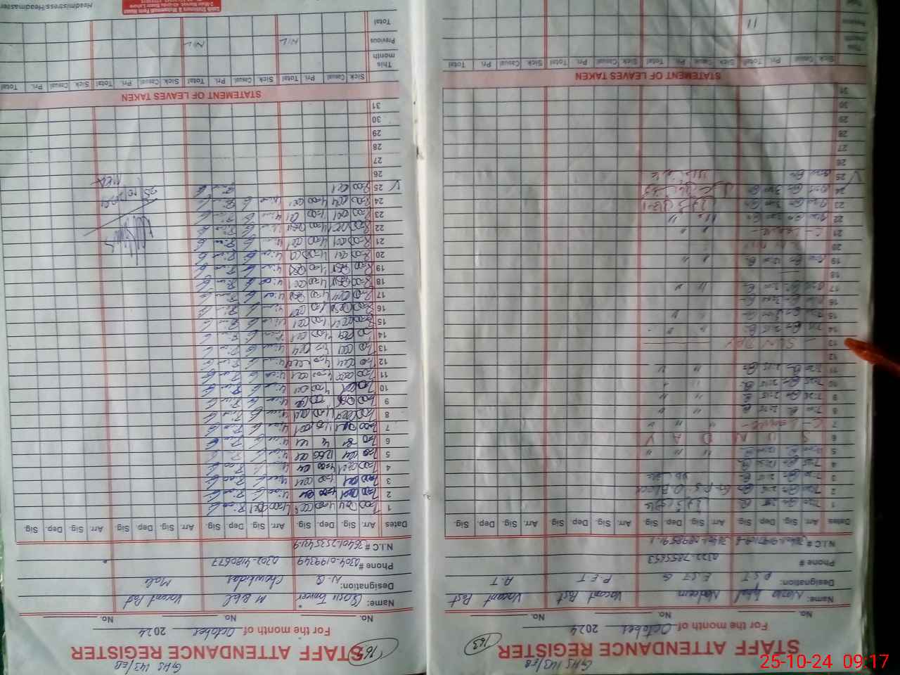 | CNIC | Full Name | Designation | R/C | Absence during last cal. month |