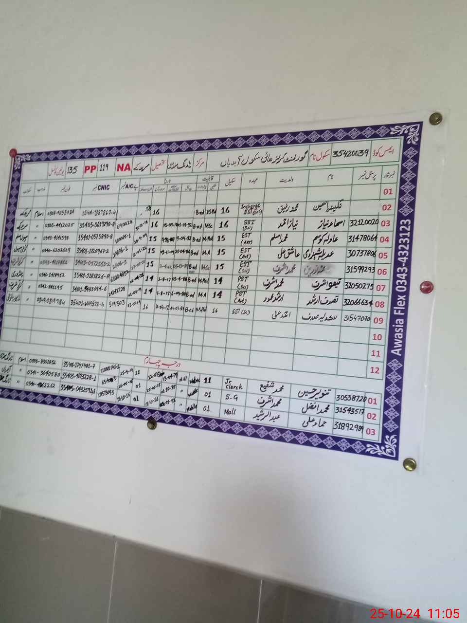| Name: Na**** Ya**** Designation: (School Headmaster's/Headmistress's) SST Arts Phone/Cell Number: 03**** |