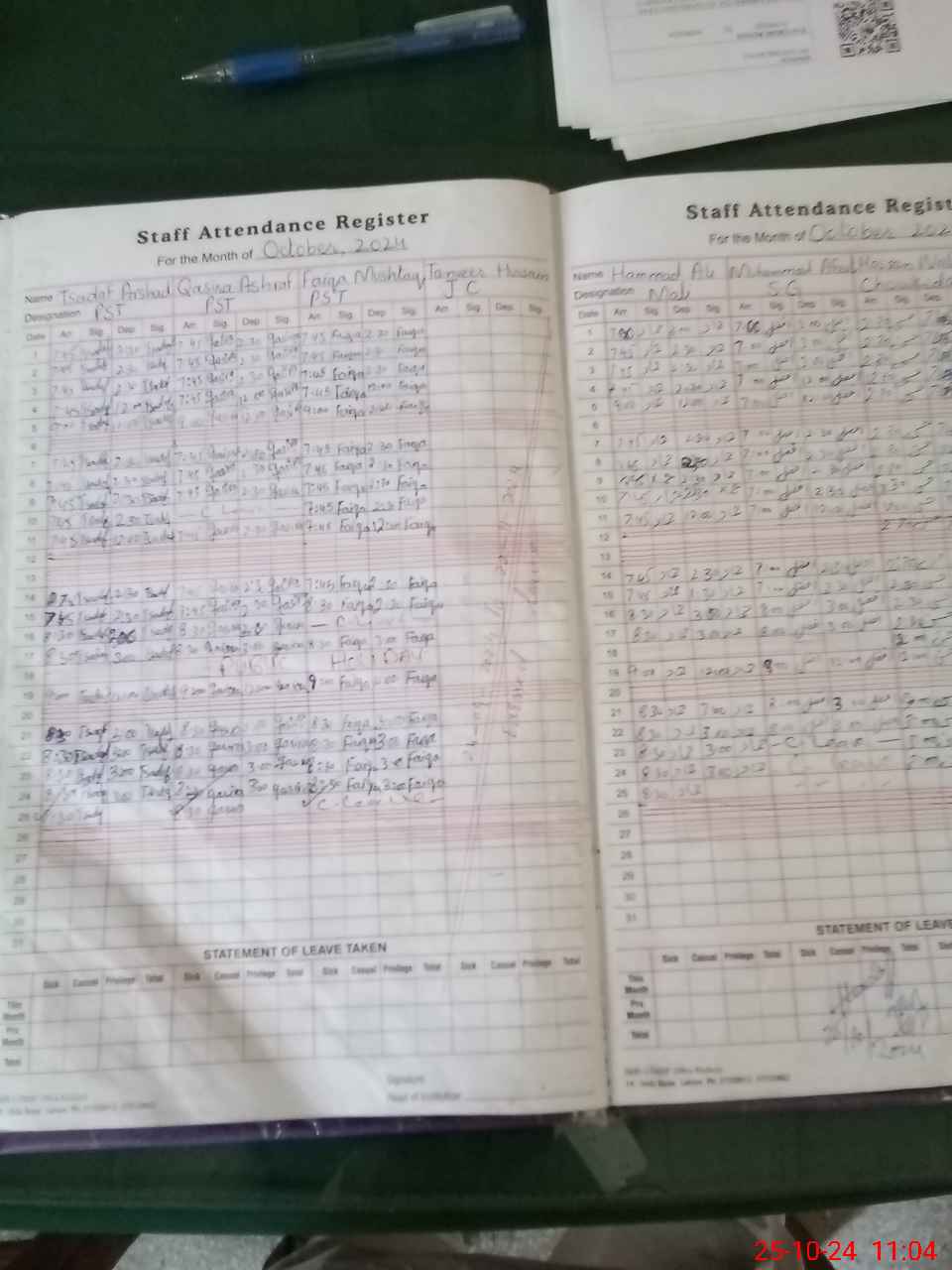 | Leave | Duty | Absent | Maternity | Medical | Ex- Pak |