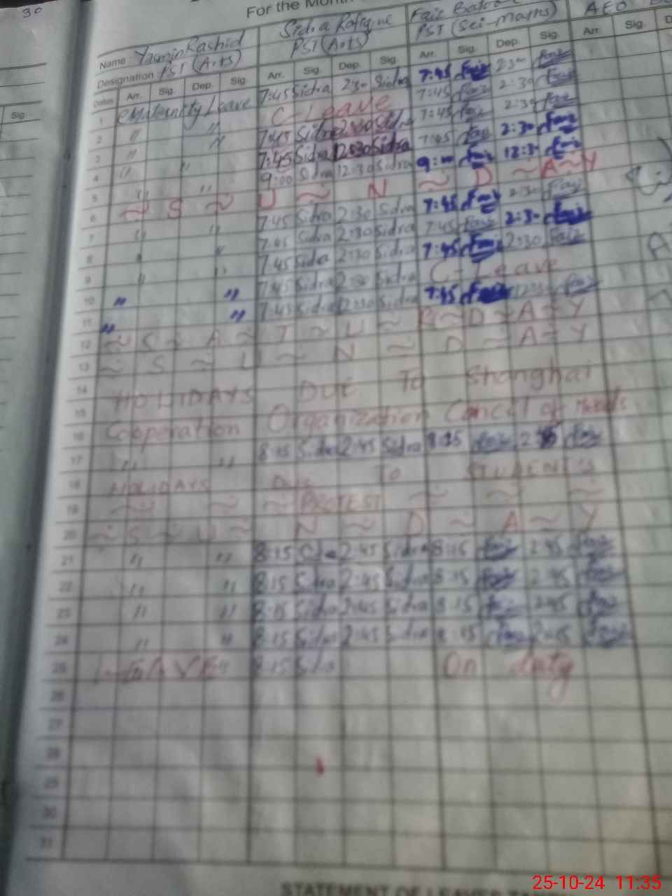 | 37**** | Ya**** Ko**** | PST | Regular | 0 | 0 | 0 | 0 | 0 | 0 | 0 | 0 | 0 | Maternity |