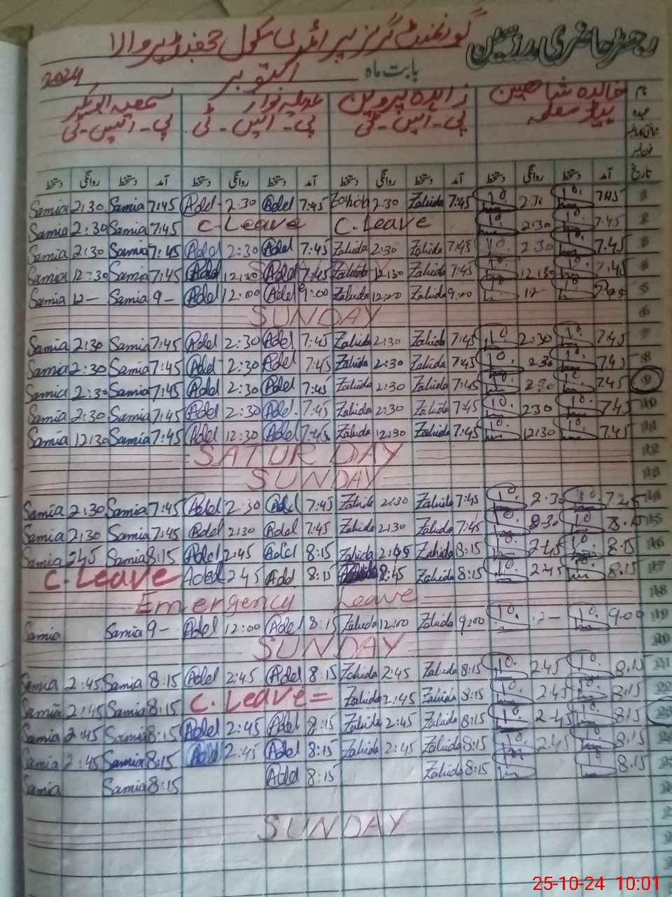 | Leave | Duty | Absent | Maternity | Medical | Ex- Pak |