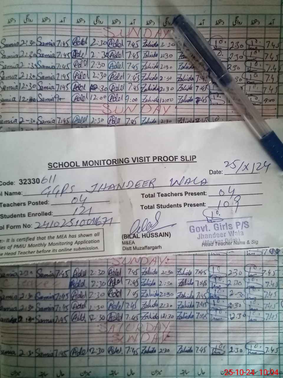 | Name: KH**** SH**** Designation: (School Headmaster's/Headmistress's) PST Phone/Cell Number: 03**** |