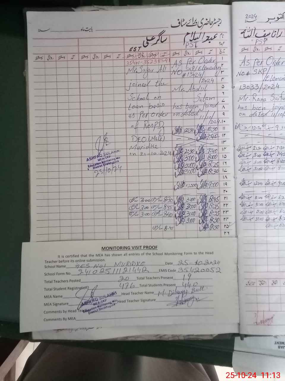 | Certified that this School was Inspected by the Undersigned MEA/DMO Today and the Information Stated Above is as Per Record. | |||||