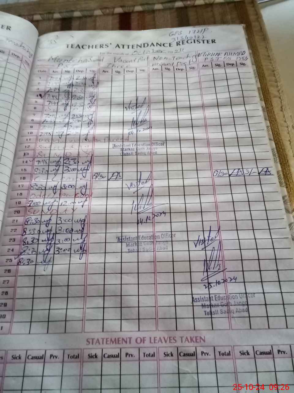 | 31**** | Mu**** Fa**** Kh**** | Contract | 0 | 0 | 30 | 0 | 0 | 0 | 0 | 0 | 0 | Absent (Un-Authorized) | |