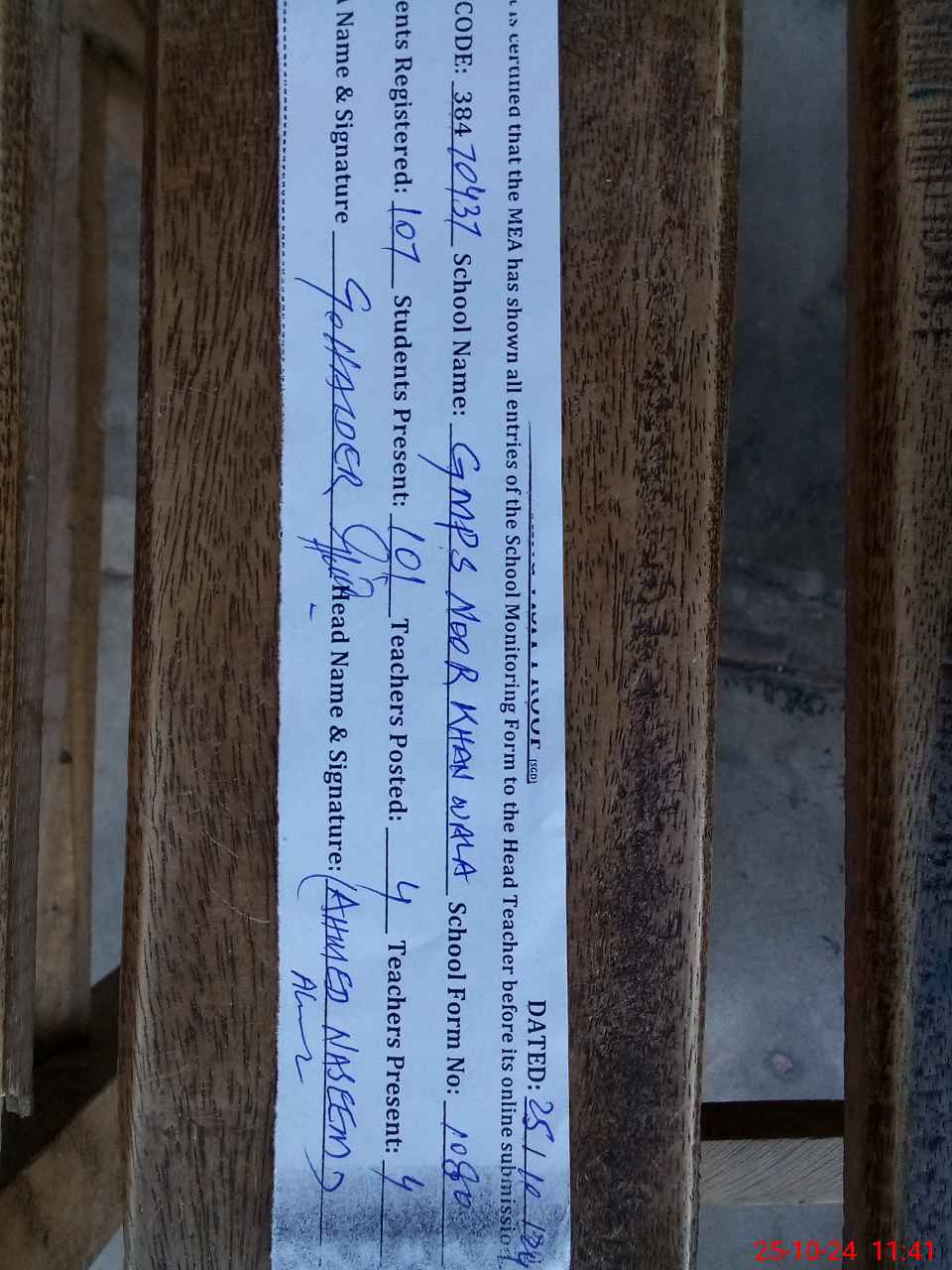 | EMIS Code: 38470437 | Name of School: GMPS NOOR KHAN-E-WALA | |||