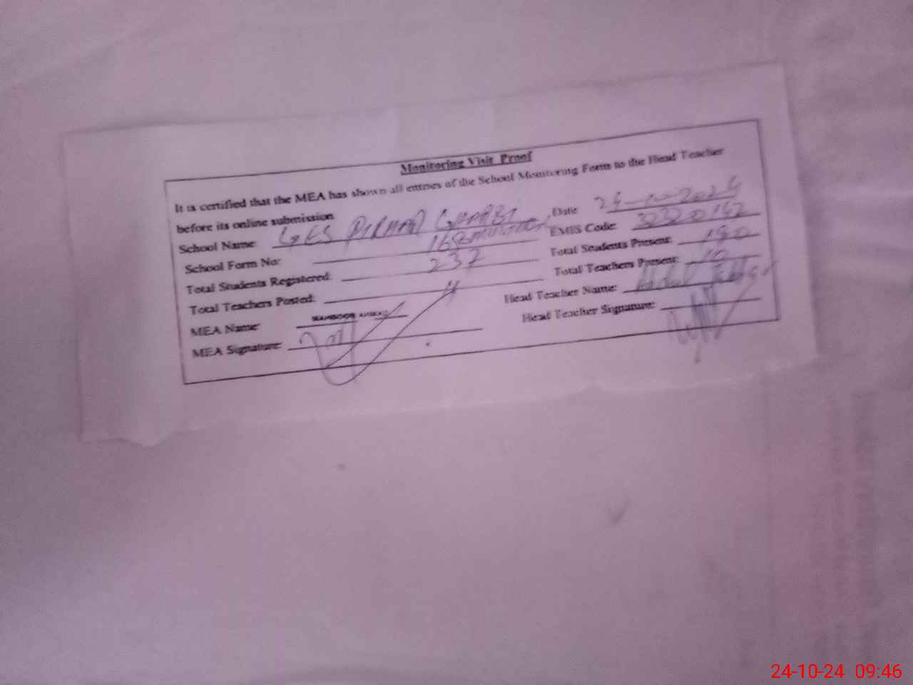 | Certified that this School was Inspected by the Undersigned MEA/DMO Today and the Information Stated Above is as Per Record. | |||||