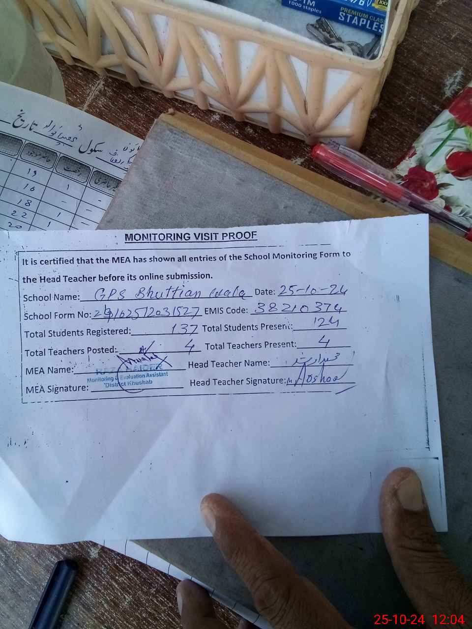 | EMIS Code: 38210374 | Name of School: GPS BHUTTIAN WALA | |||