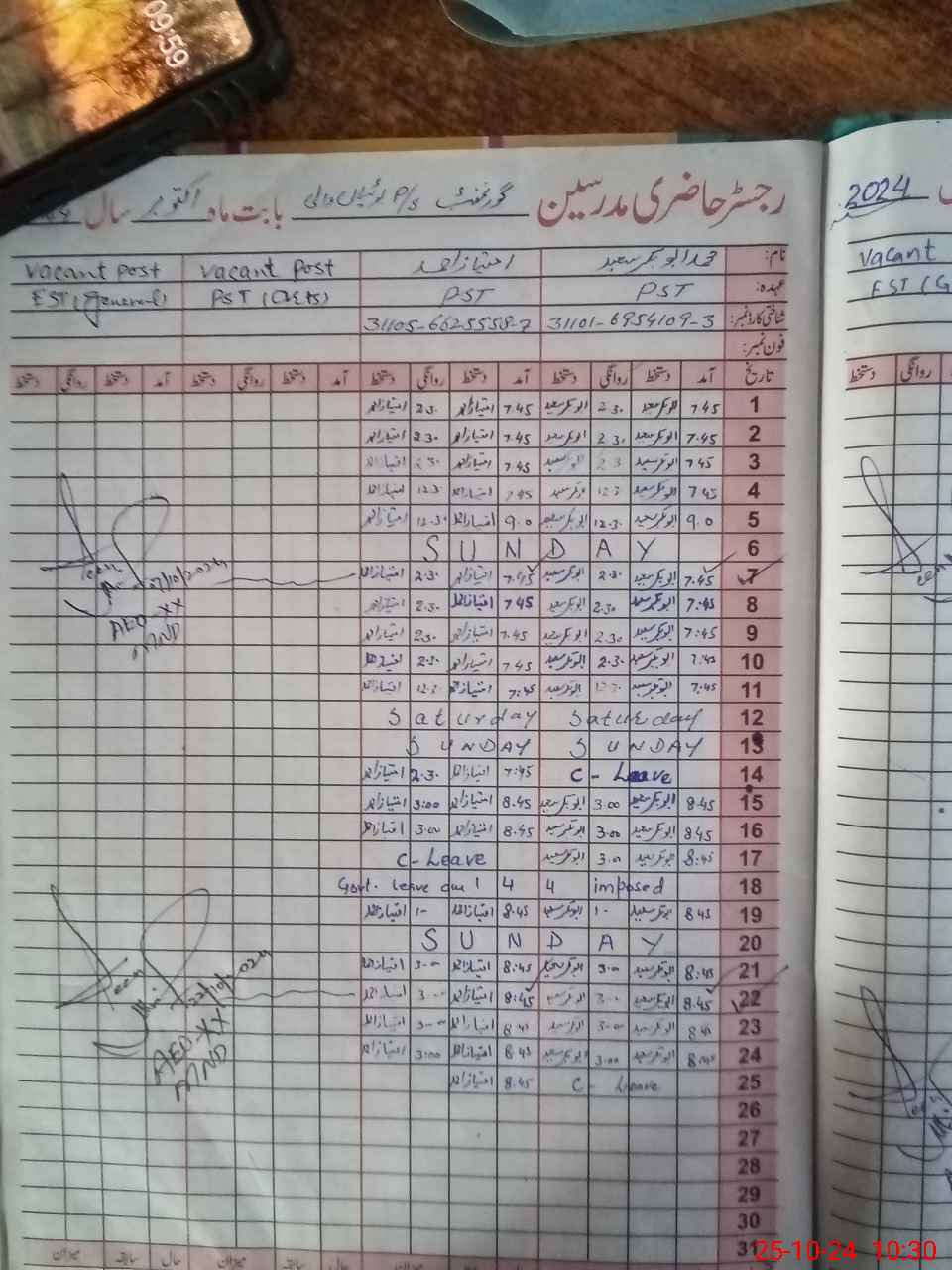 | Name: Im**** Ah**** Designation: (School Headmaster's/Headmistress's) PST Phone/Cell Number: 03**** |