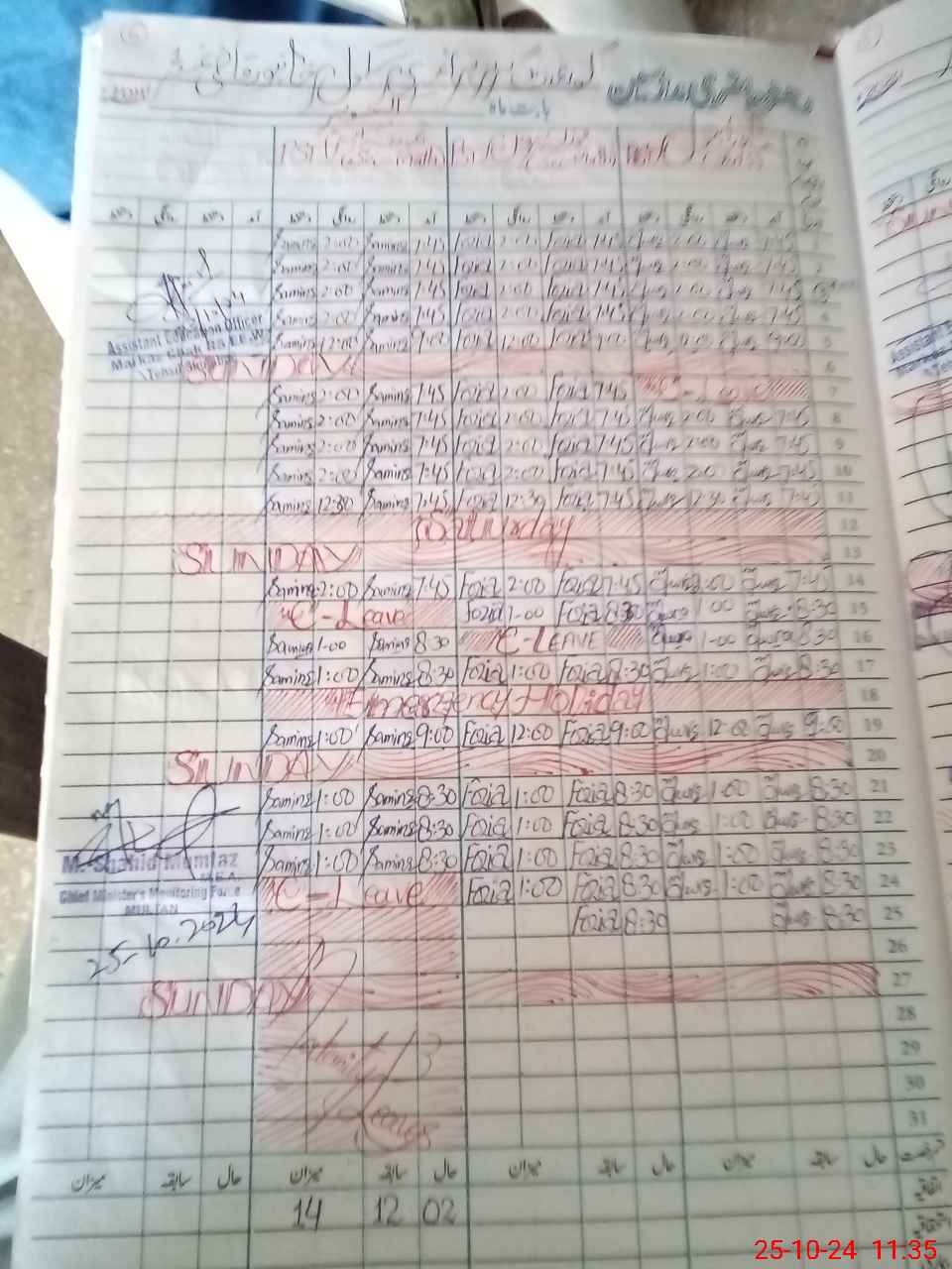 | CNIC | Full Name | Designation | R/C | Absence During Last Calender Month |
