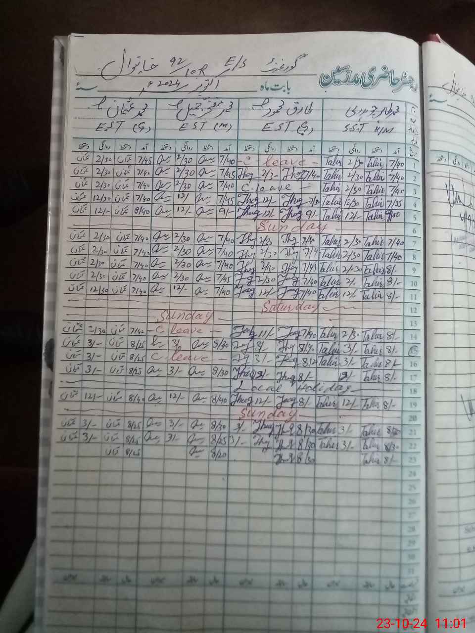 | Leave | Duty | Absent | Maternity | Medical | Ex- Pak |