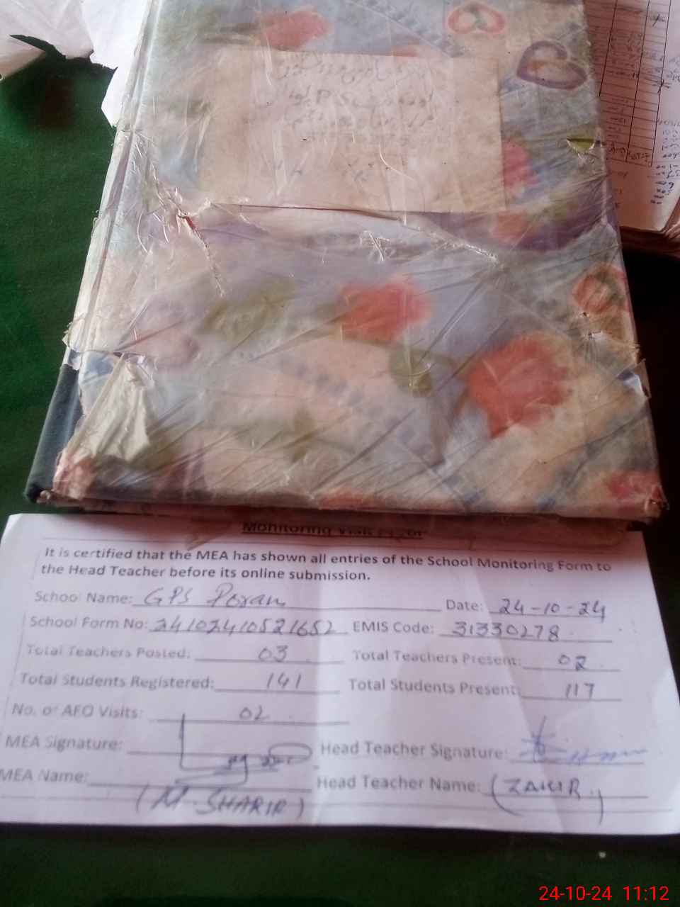 | Attendance Register | Head Teacher | MEA with School | Visit Proof |