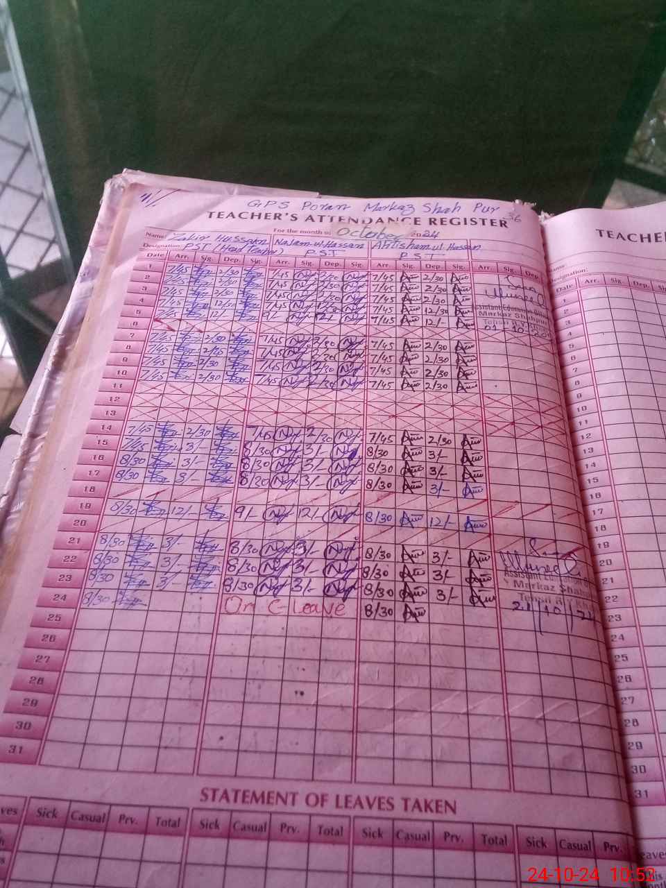 | Name: ZA**** HU**** Designation: (School Headmaster's/Headmistress's) PST/PTC/JV Phone/Cell Number: 03**** |