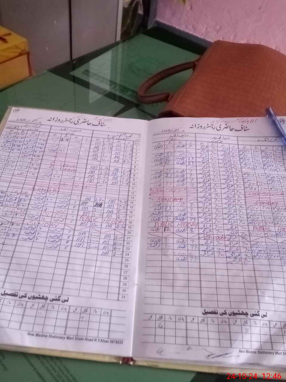 | CNIC | Full Name | Designation | R/C | Absence During Last Calender Month |