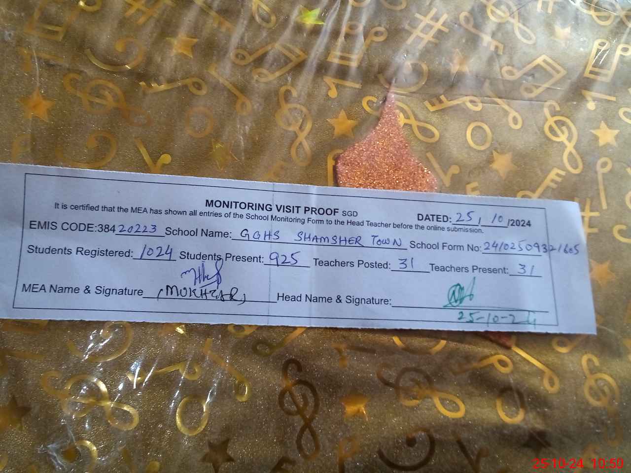 | EMIS Code: 38420223 | Name of School: GGHS SHAMSHER TOWN | |||