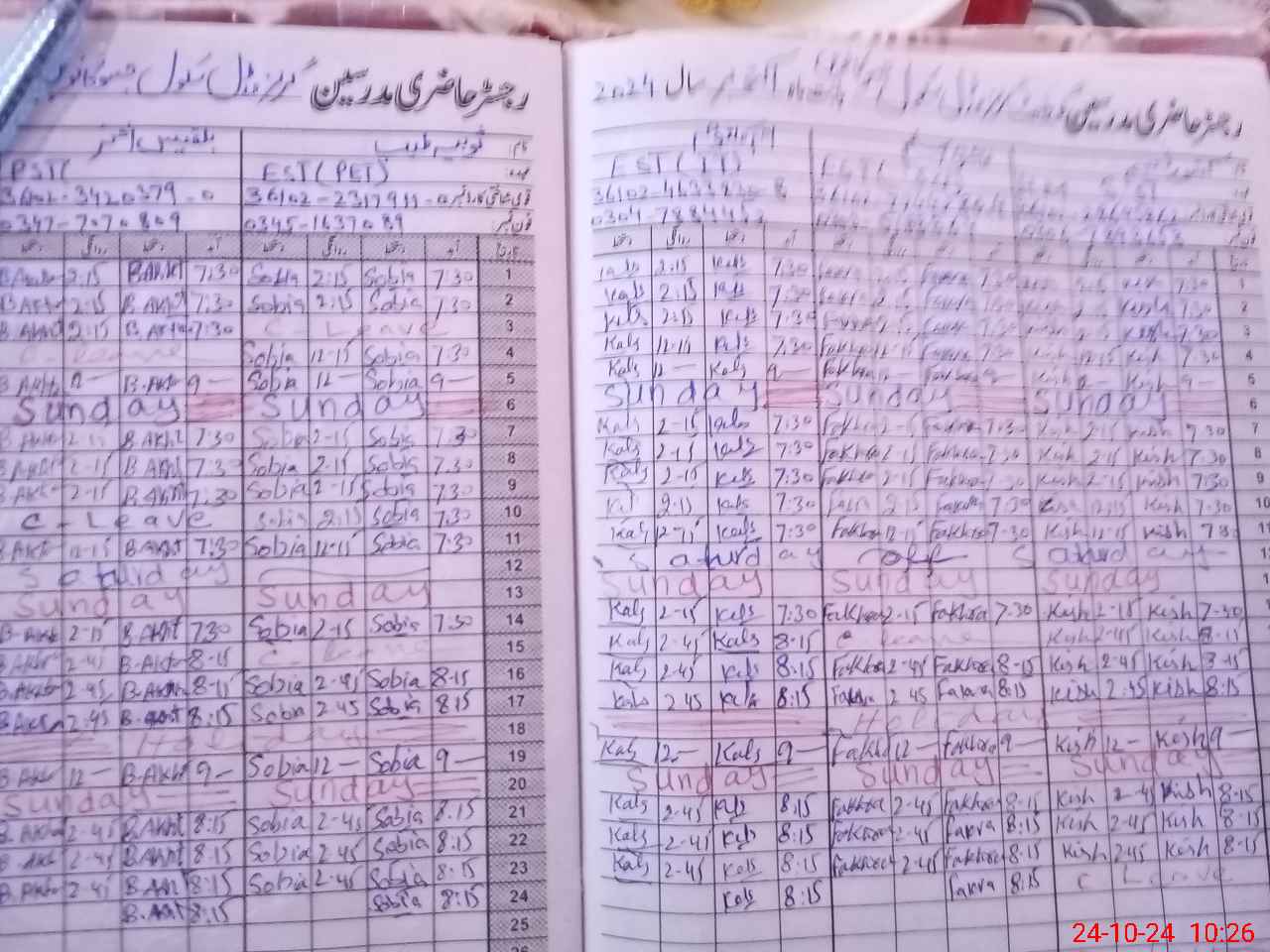 | Leave | Duty | Absent | Maternity | Medical | Ex- Pak |
