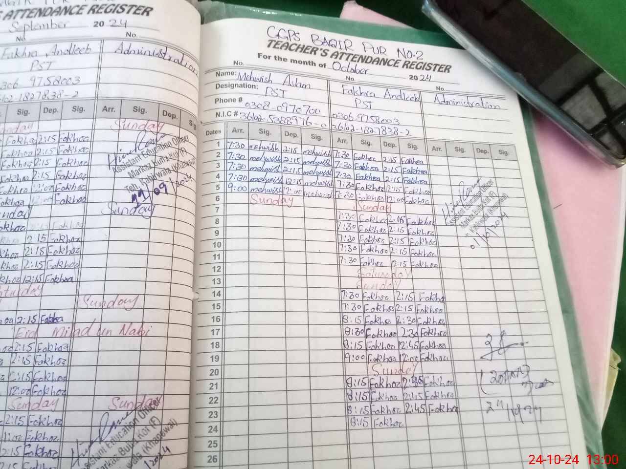 | CNIC | Full Name | Designation | R/C | Absence during last cal. month |