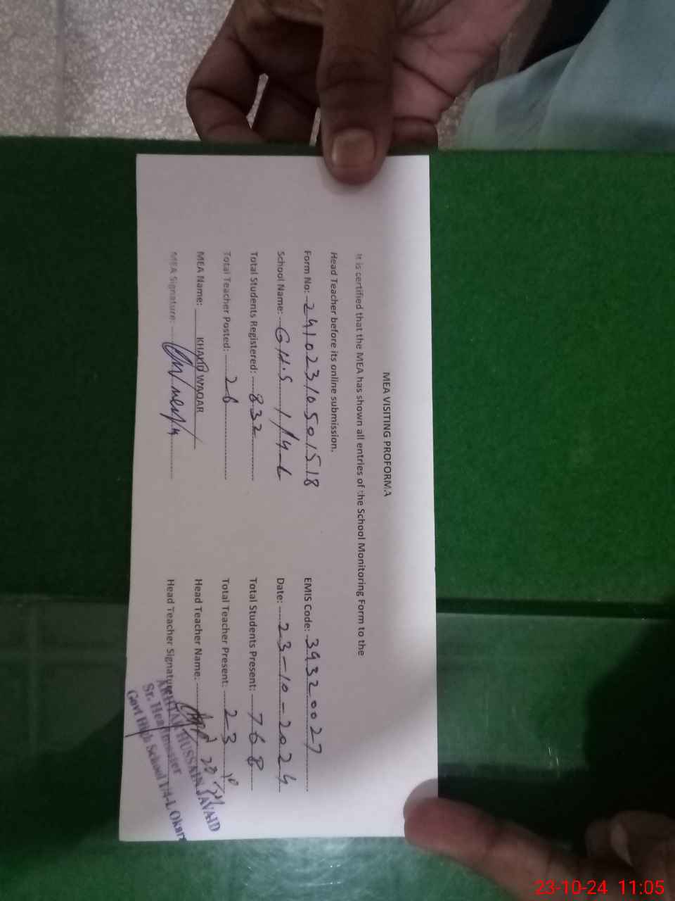 | EMIS Code: 39320027 | Name of School: GHS CHAK NO. 1/4-L | |||