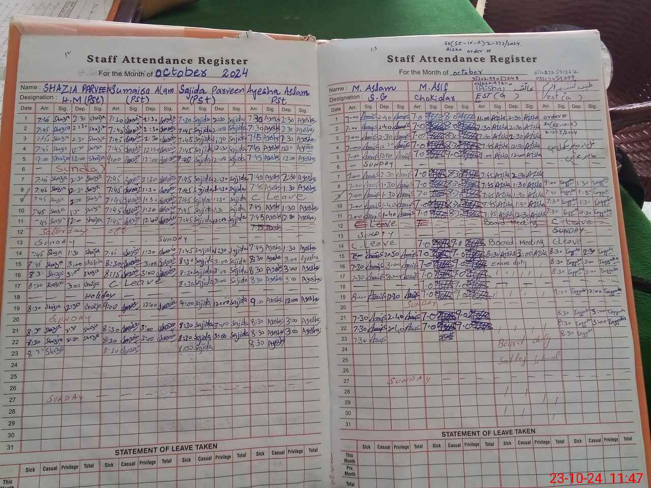 | 35**** | Ai**** | EST | Regular | 0 | 0 | 0 | 0 | 0 | 0 | 0 | 0 | 0 | Exam Duty |