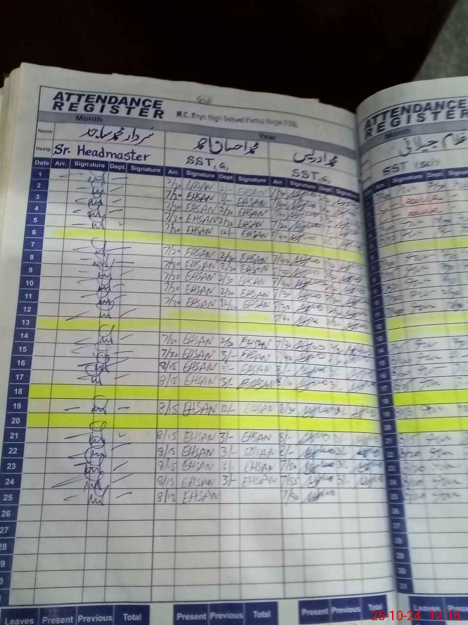 | CNIC | Full Name | Designation | R/C | Absence During Last Calender Month |