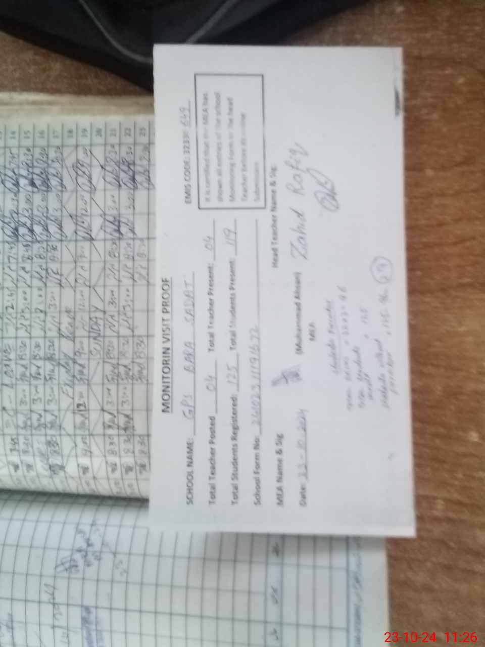 | EMIS Code: 32330649 | Name of School: GPS BARA SADAT | |||