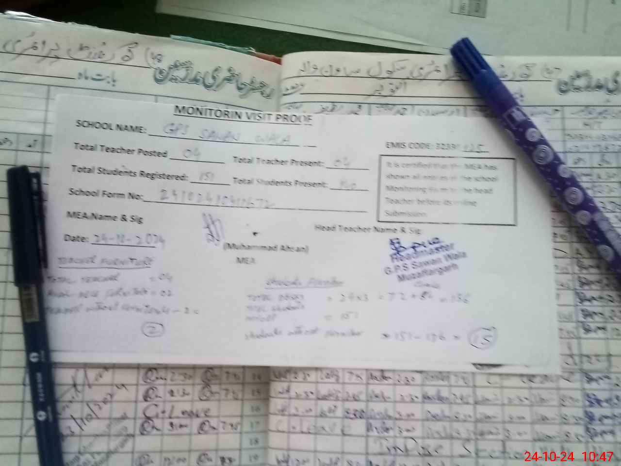 | Attendance Register | Head Teacher | MEA with School | Visit Proof |