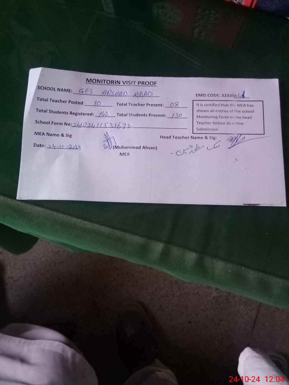 | EMIS Code: 32330041 | Name of School: GES ARSHAD ABAD | |||