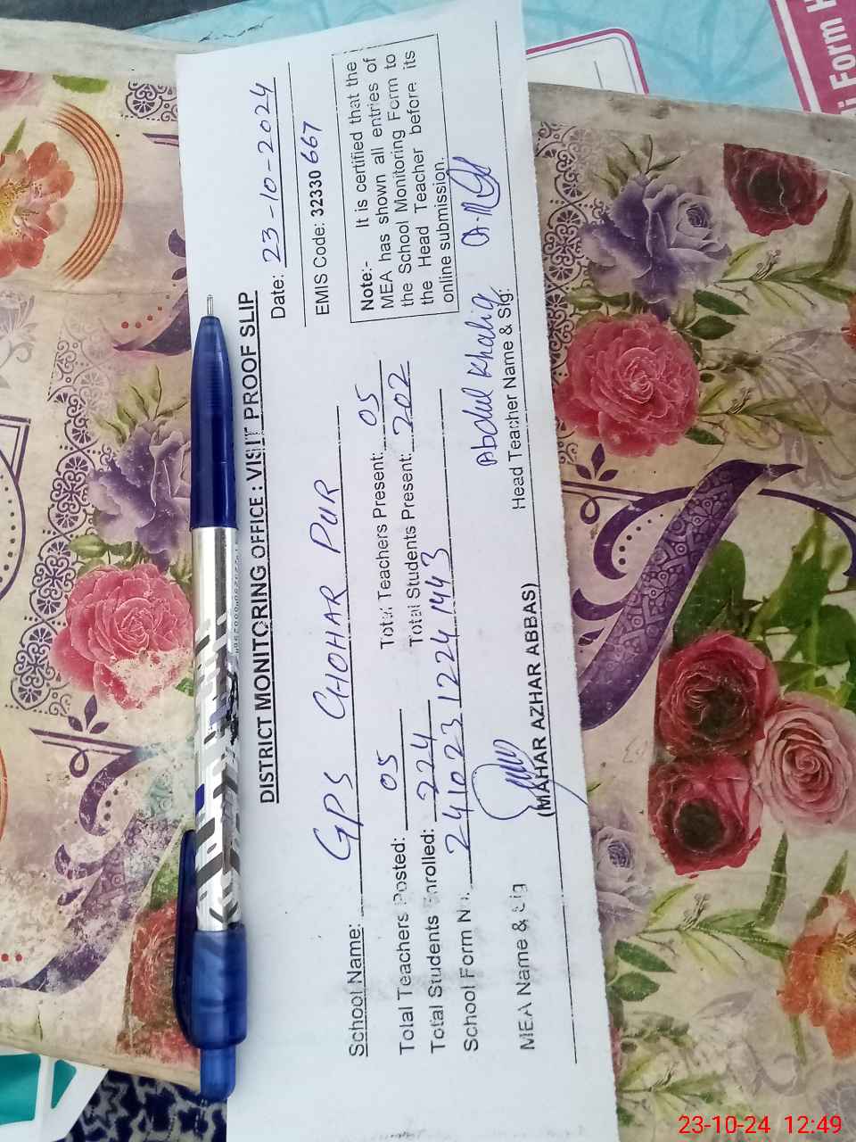 | EMIS Code: 32330667 | Name of School: GPS CHOHAR PUR | |||