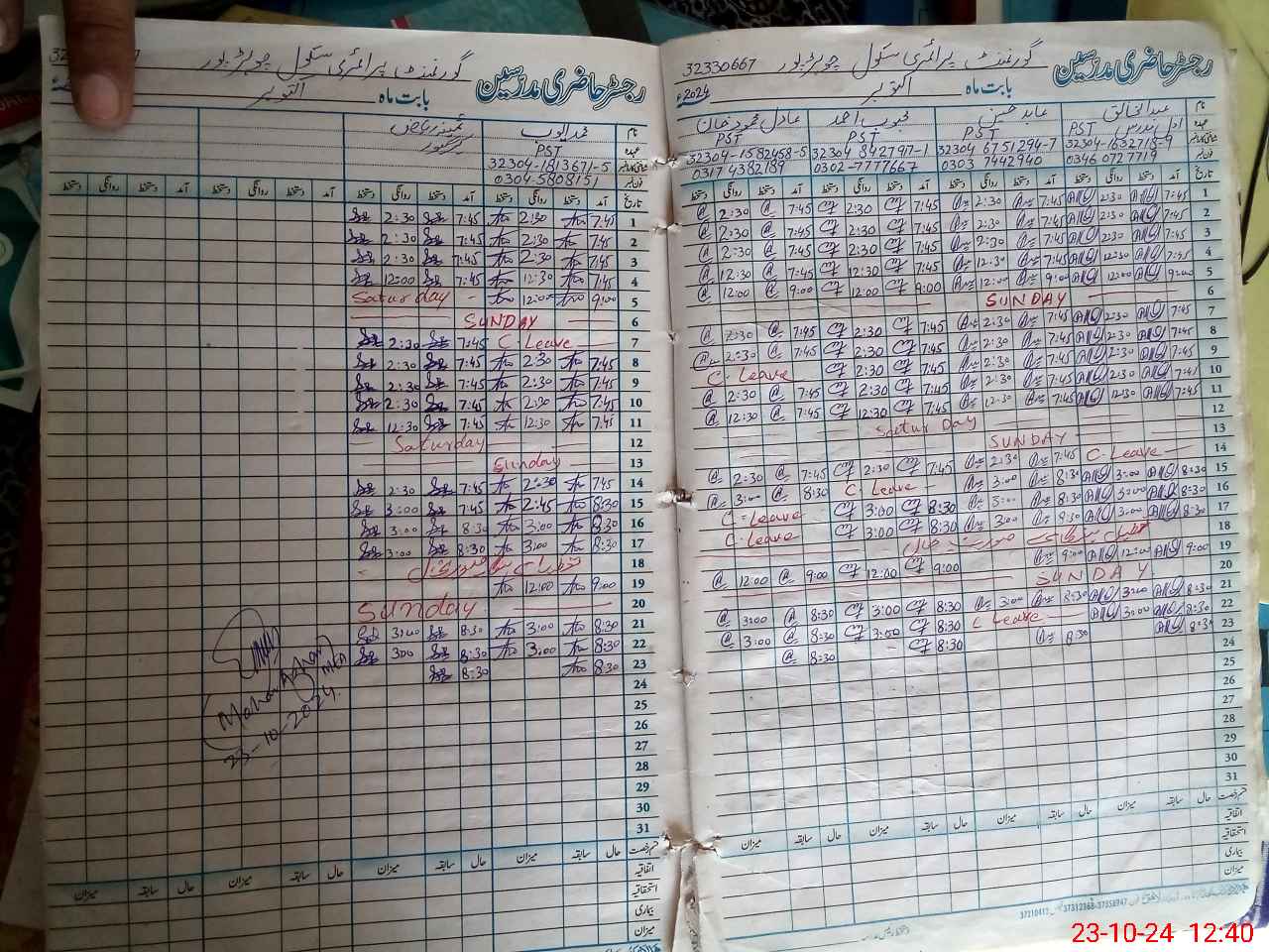 | Name: AB**** KH**** Designation: (School Headmaster's/Headmistress's) PST/PTC/JV Phone/Cell Number: 03**** |