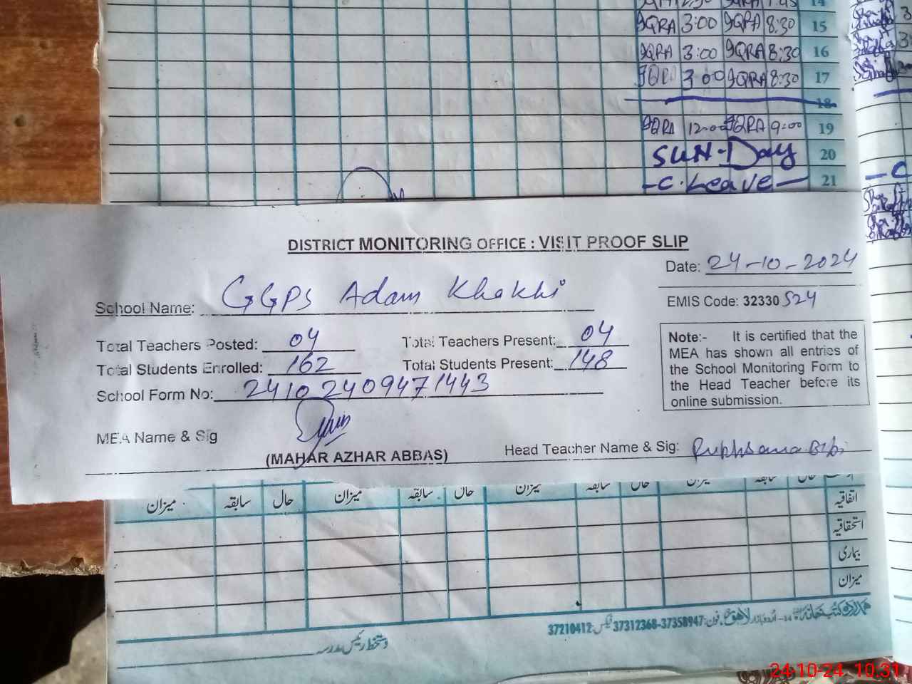 | EMIS Code: 32330524 | Name of School: GGPS ADAM KHAKI | |||