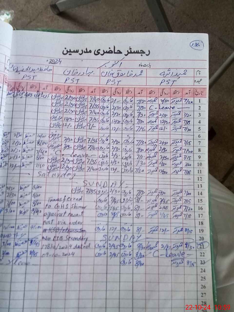 | CNIC | Full Name | Designation | R/C | Absence During Last Calender Month |