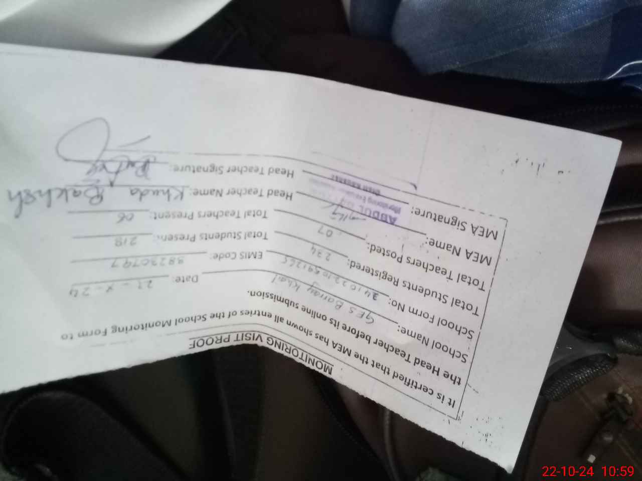 | Name: Kh**** Ba**** Designation: (School Headmaster's/Headmistress's) SSE Phone/Cell Number: 03**** |