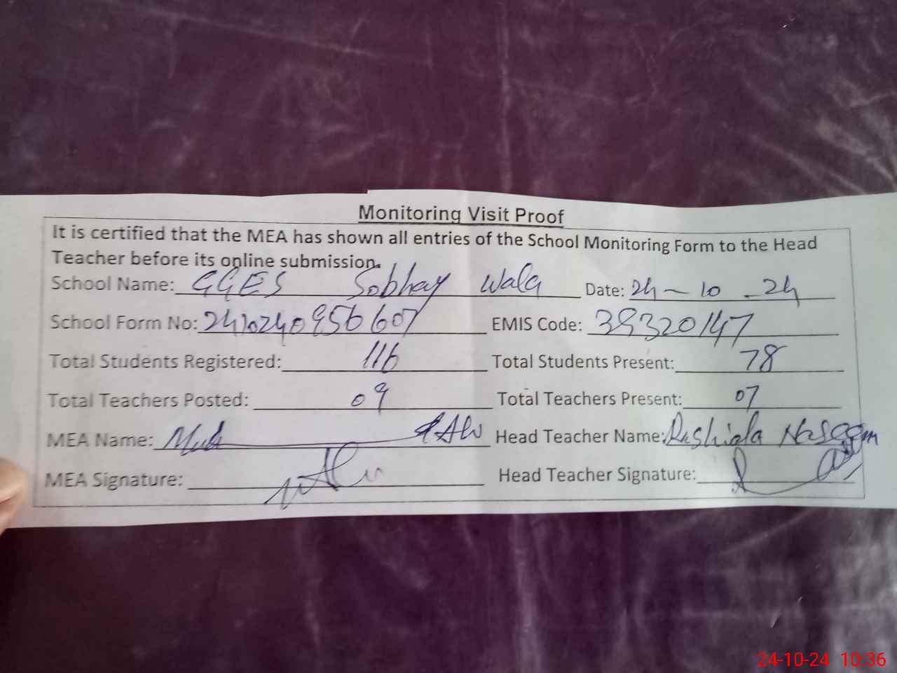 | EMIS Code: 39320147 | Name of School: GGES SOBAY WALA | |||