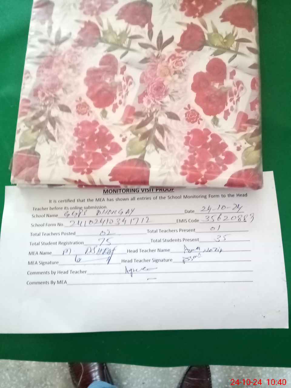 | EMIS Code: 35620889 | Name of School: GGPS DHONGAY | |||