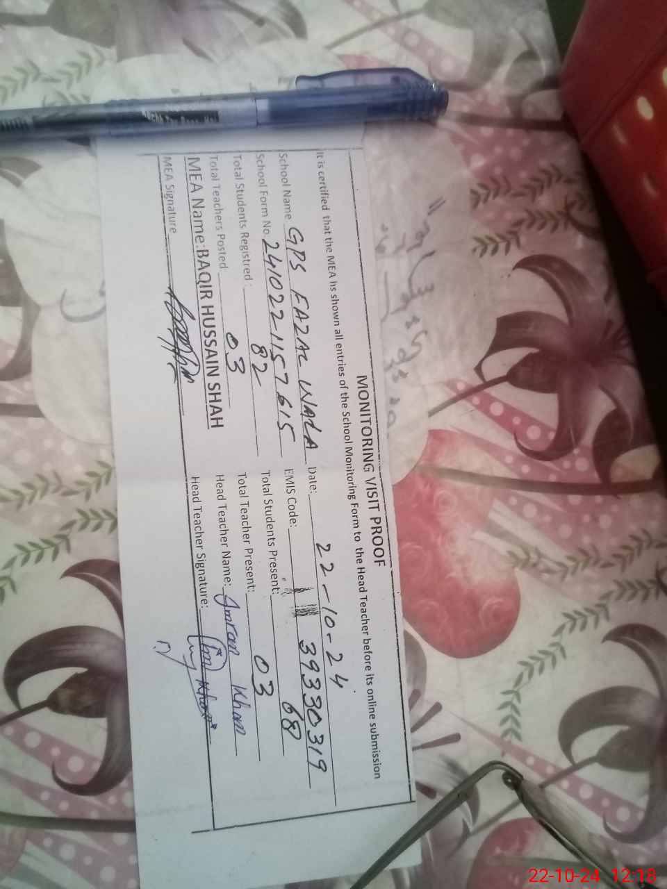 | EMIS Code: 39330319 | Name of School: GPS FAZIL WALA | |||