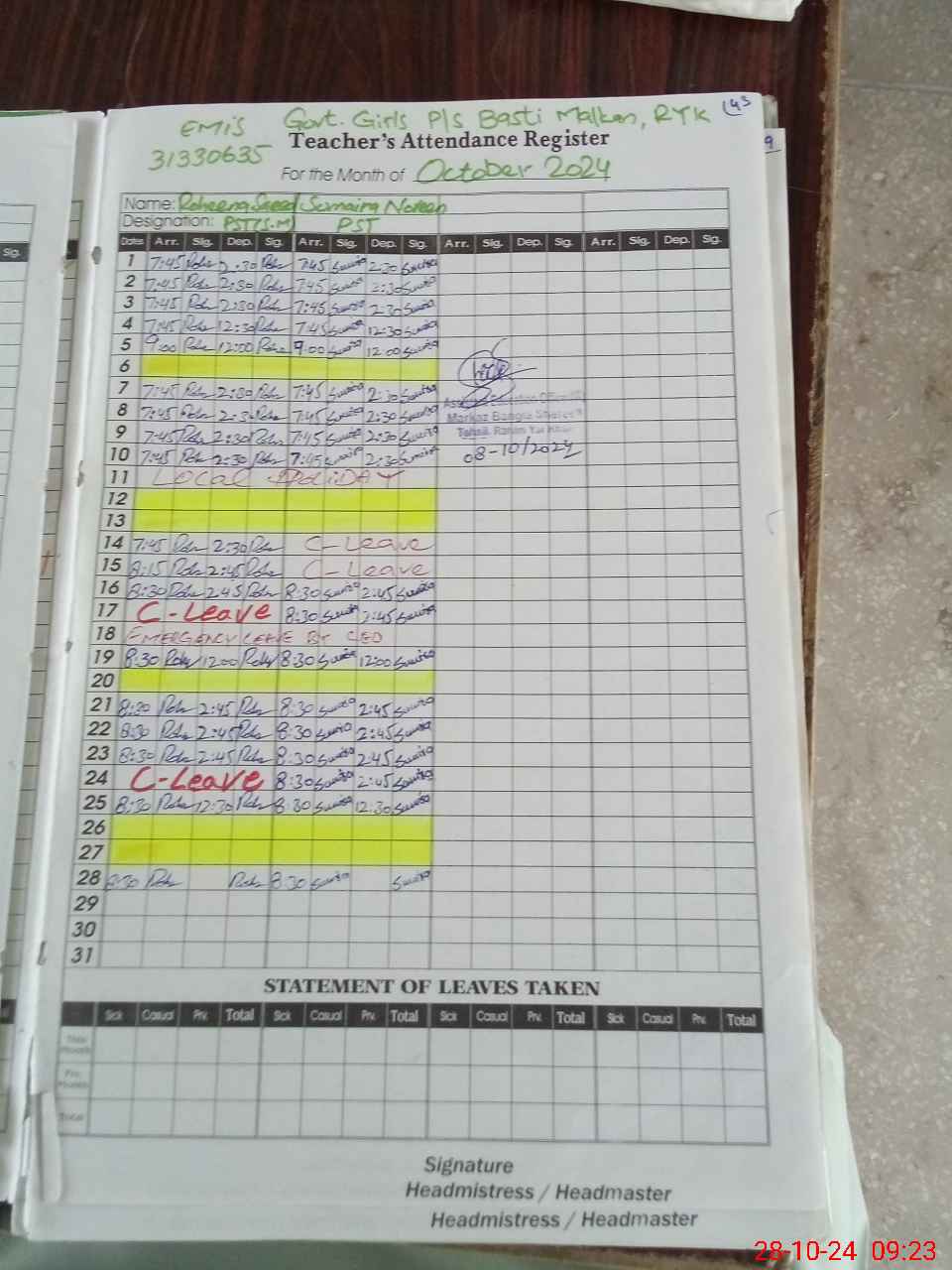 | District: RAHIMYAR KHAN | Tehsil: RAHIMYAR KHAN | Markaz: BANGLA SHEREEN-FEMALE | Level: Primary | |