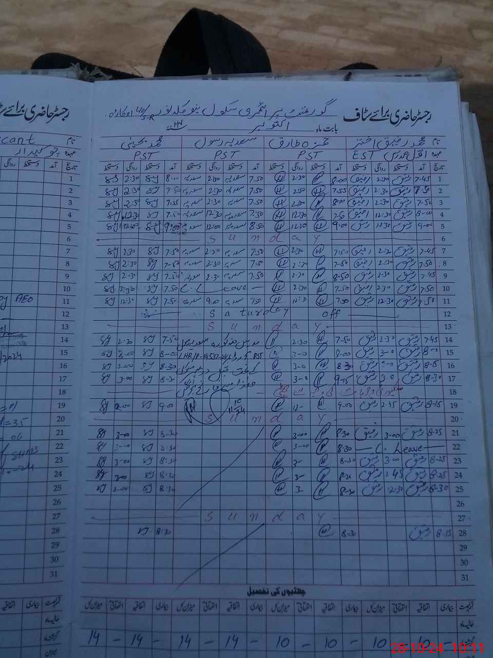 | CNIC | Full Name | Designation | R/C | Absence During Last Calender Month |