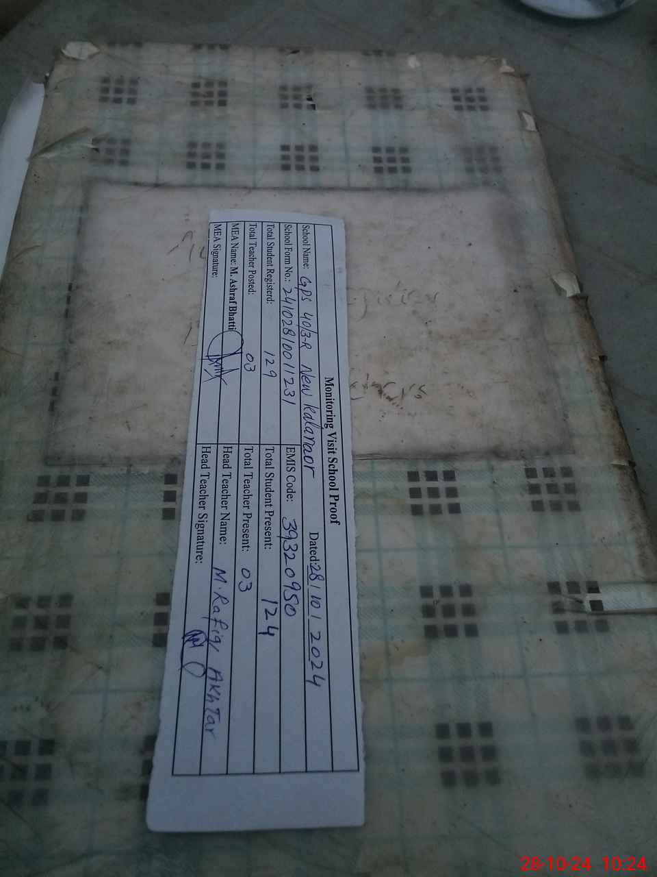 | Attendance Register | Head Teacher | MEA with School | Visit Proof |