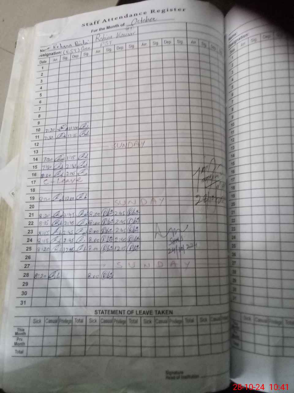 | 37**** | Za**** As**** | 1 | 0 | 0 | 30 | 0 | 0 | 0 | 0 | 0 | 0 | Absent (Un-Authorized) | |
