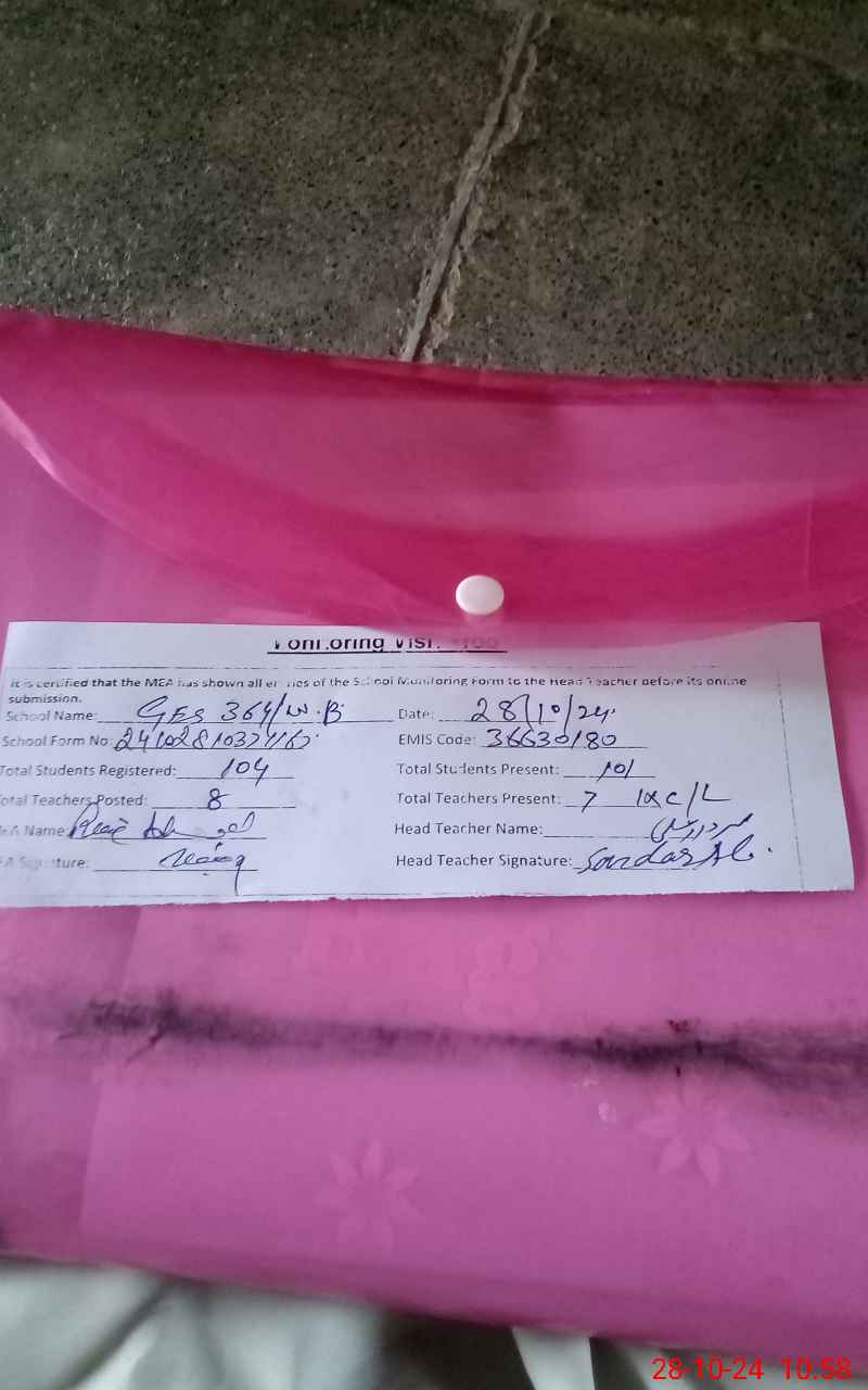| EMIS Code: 36630180 | Name of School: GES 364/WB | |||