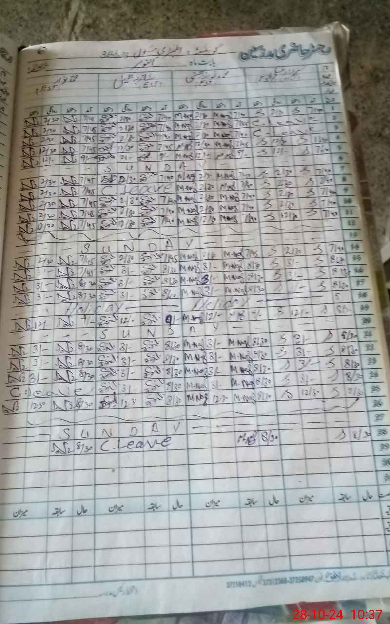 | CNIC | Full Name | Designation | R/C | Absence During Last Calender Month |
