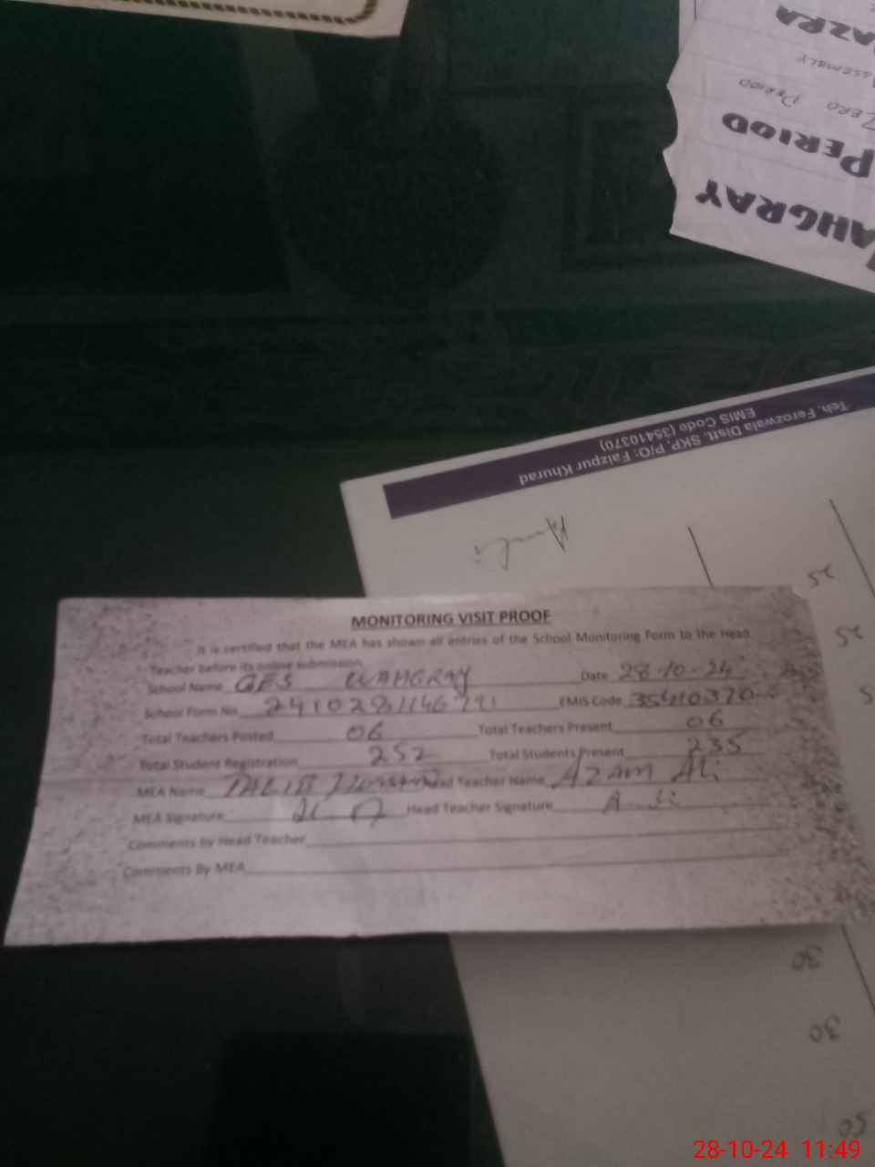| Certified that this School was Inspected by the Undersigned MEA/DMO Today and the Information Stated Above is as Per Record. | |||||