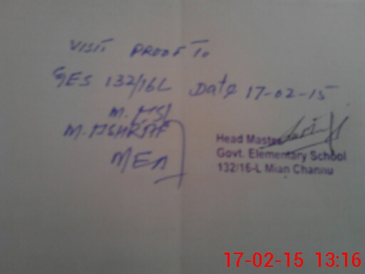 | EMIS Code: 36430058 | Name of School: GES 132/16-L, MIAN CHANNU | |||