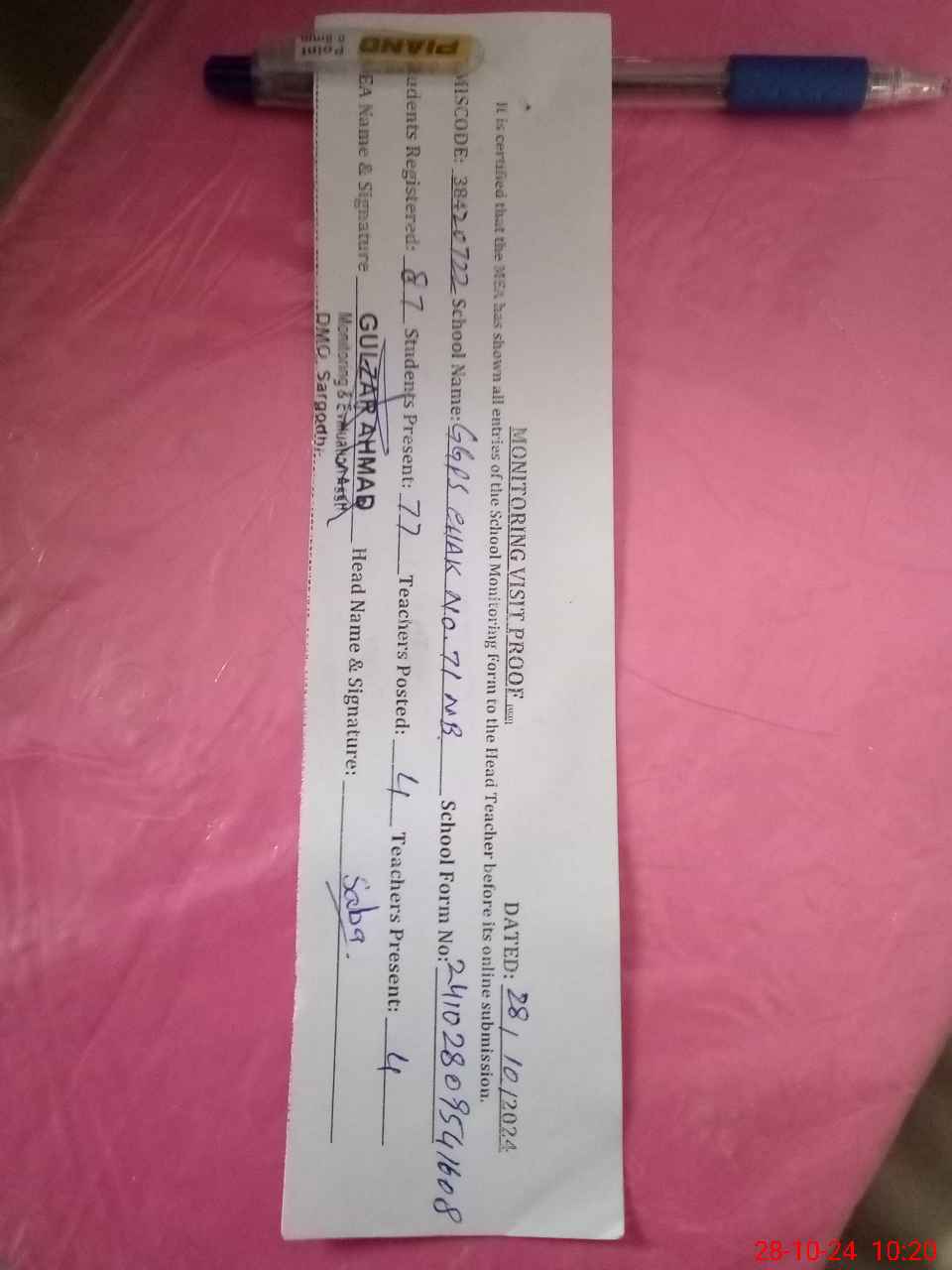 | EMIS Code: 38420722 | Name of School: GGPS CHAK NO.71 NB | |||