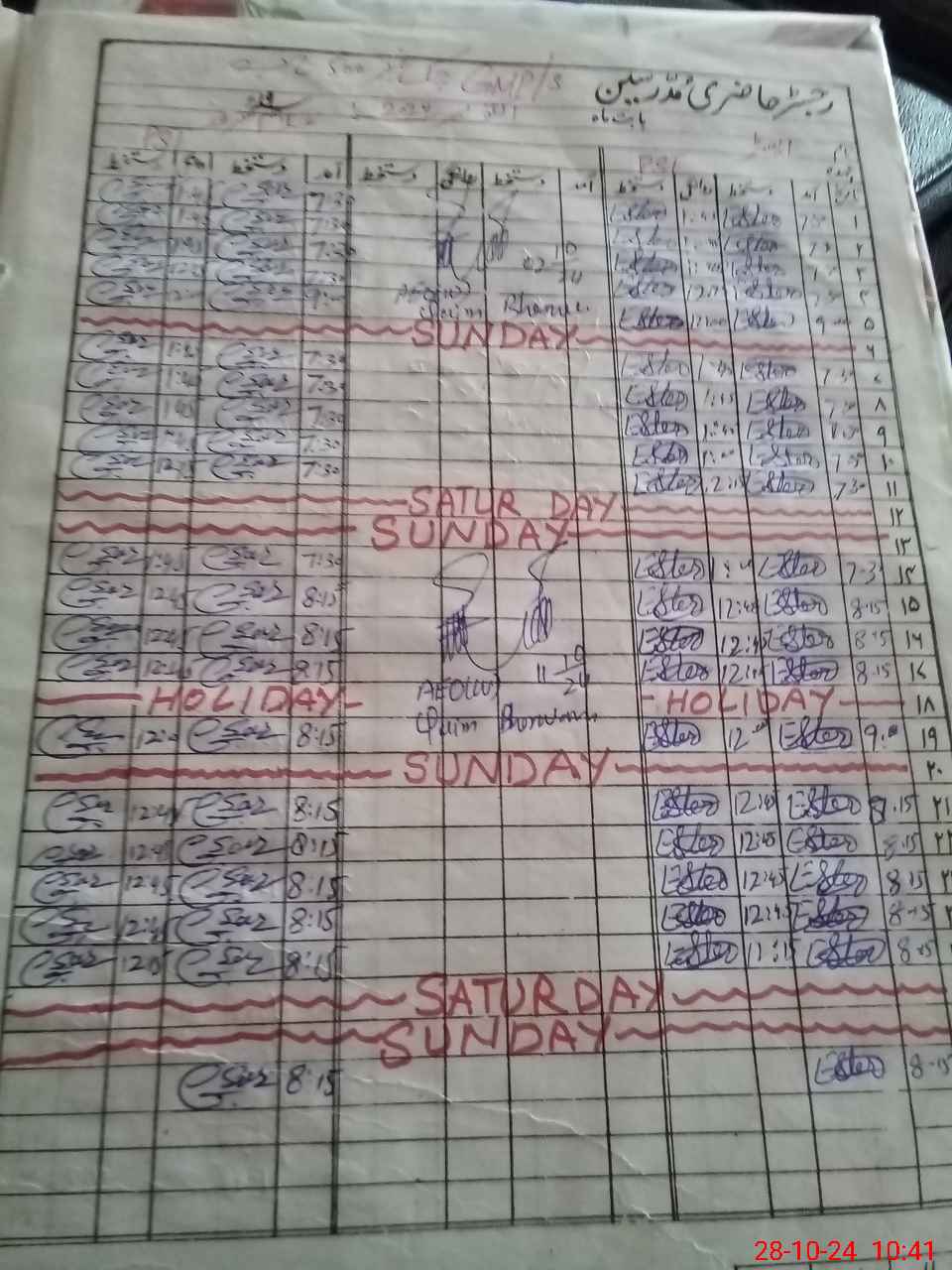 | CNIC | Full Name | Designation | R/C | Absence During Last Calender Month |