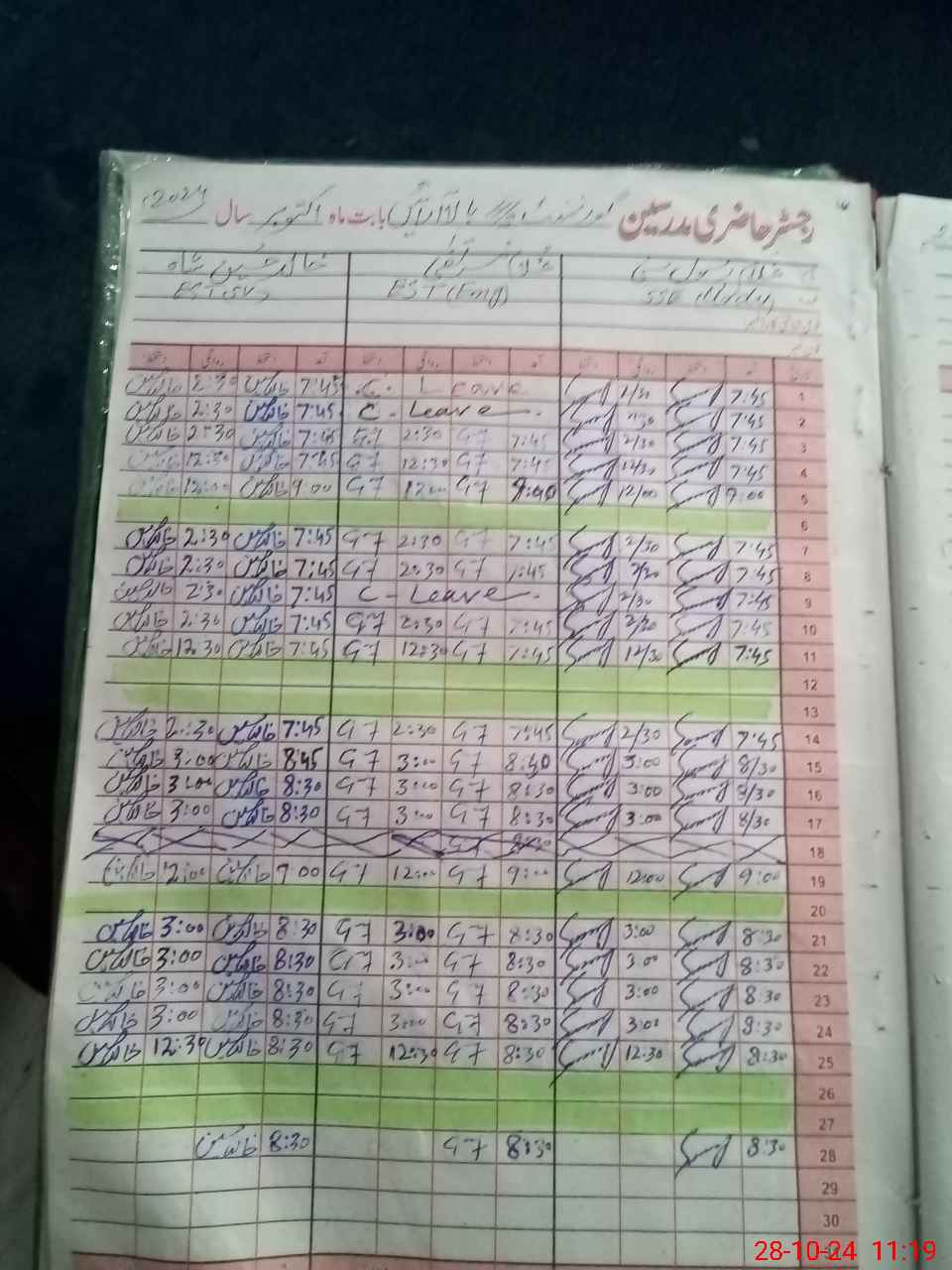 | CNIC | Full Name | Designation | R/C | Absence During Last Calender Month |