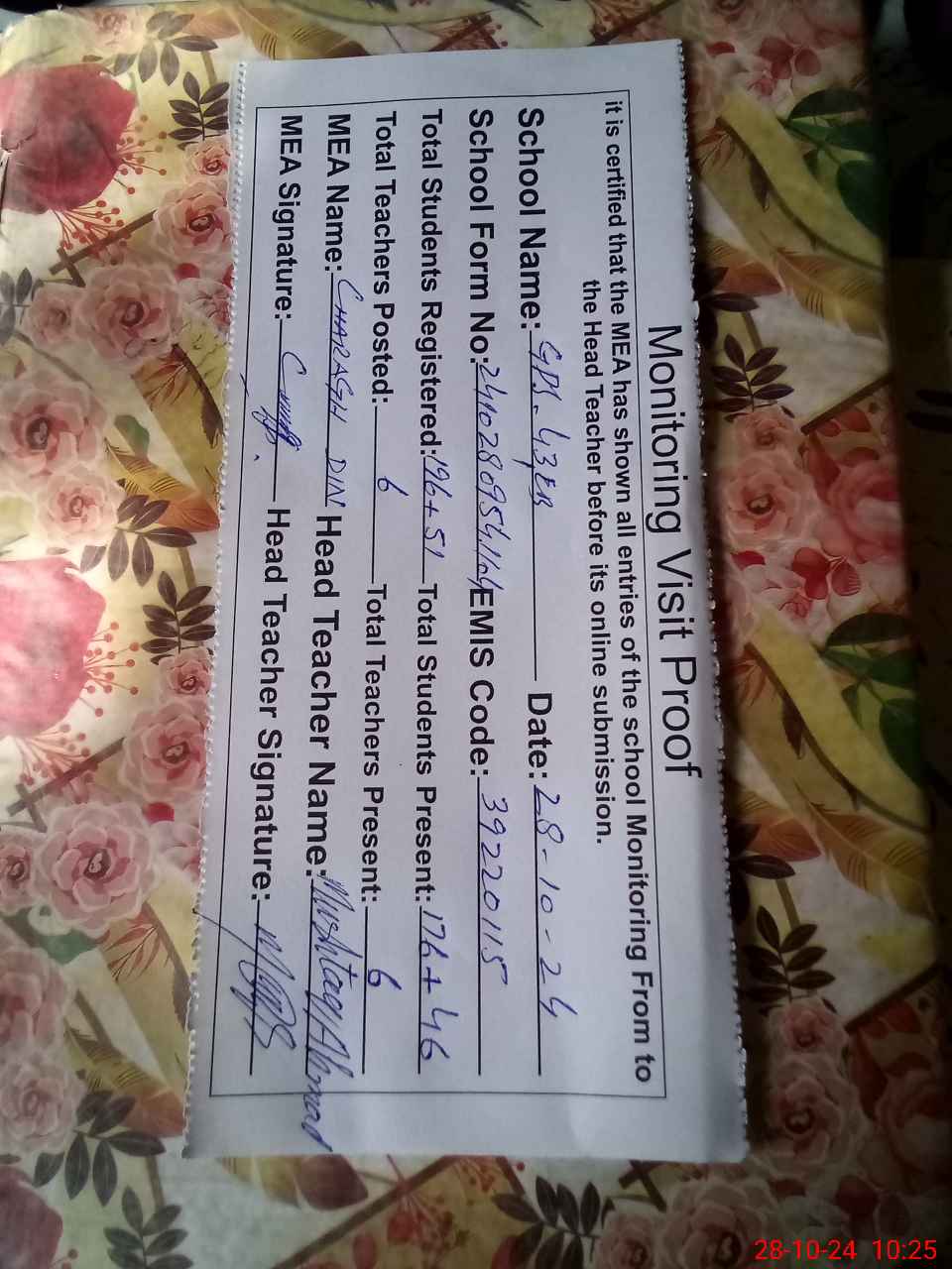 | Certified that this School was Inspected by the Undersigned MEA/DMO Today and the Information Stated Above is as Per Record. | |||||