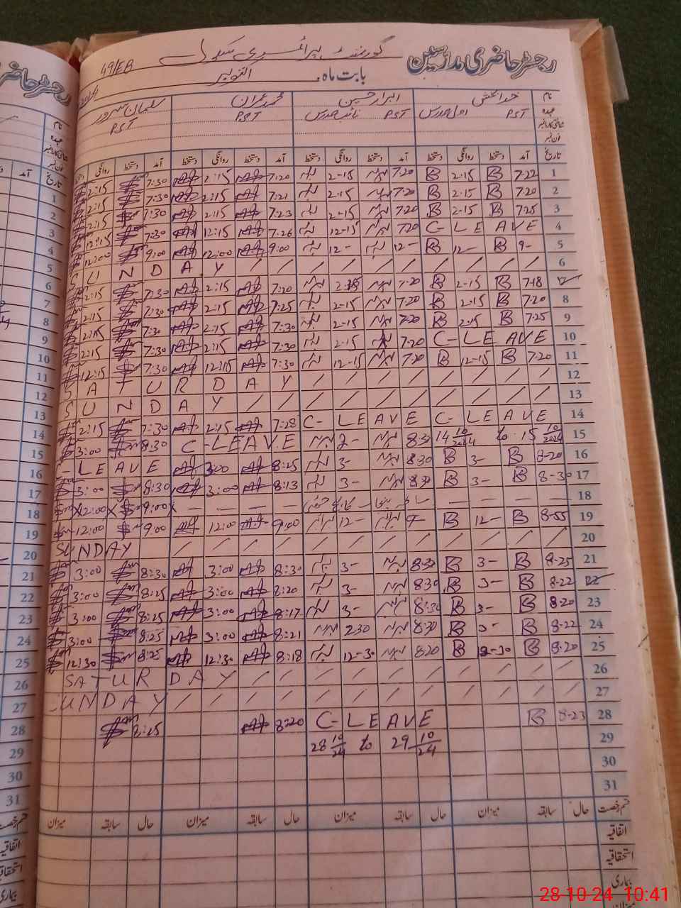| CNIC | Full Name | Designation | R/C | Absence During Last Calender Month |