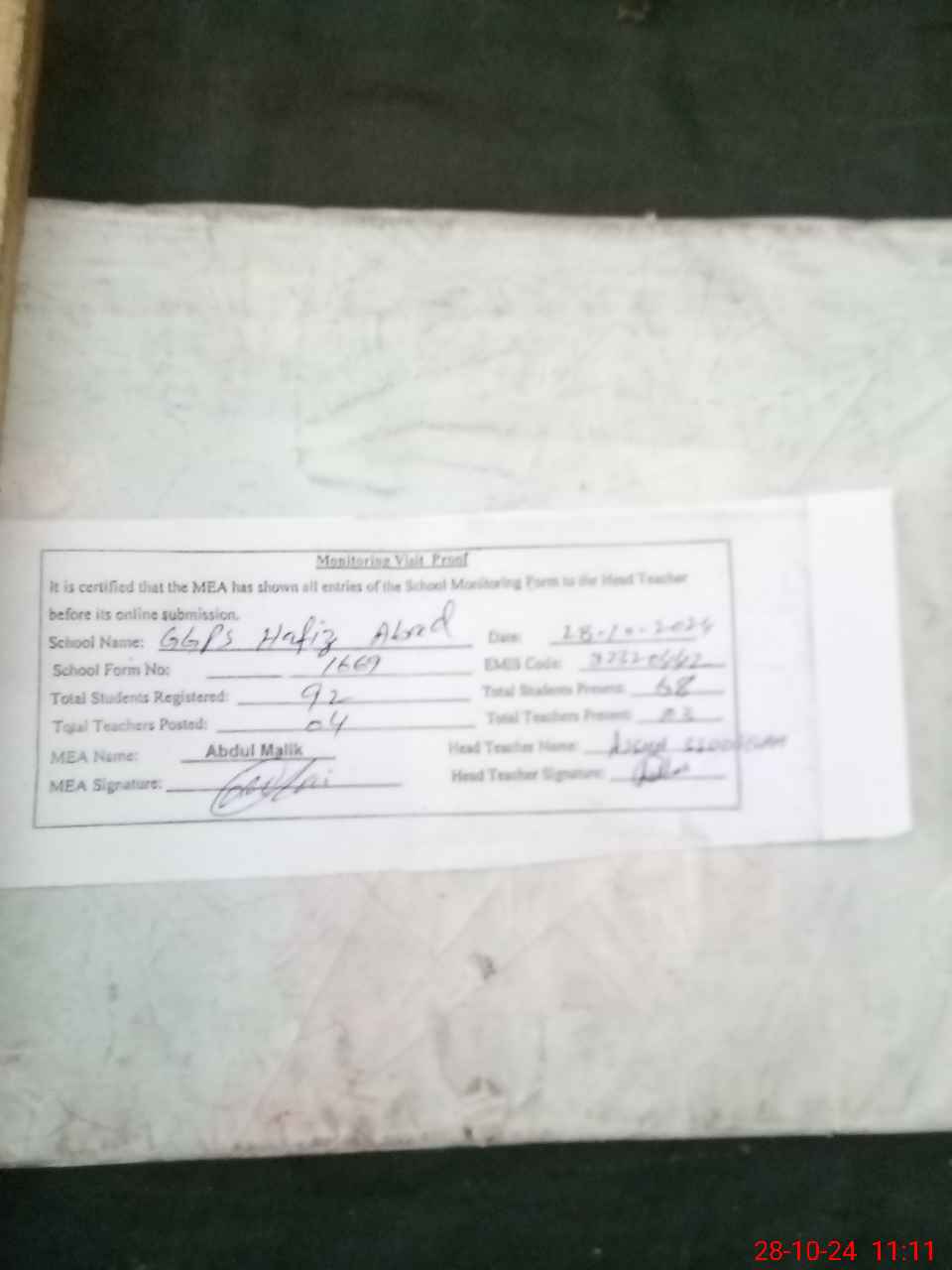 | EMIS Code: 32320442 | Name of School: GGPS HAFIZ ABAD | |||