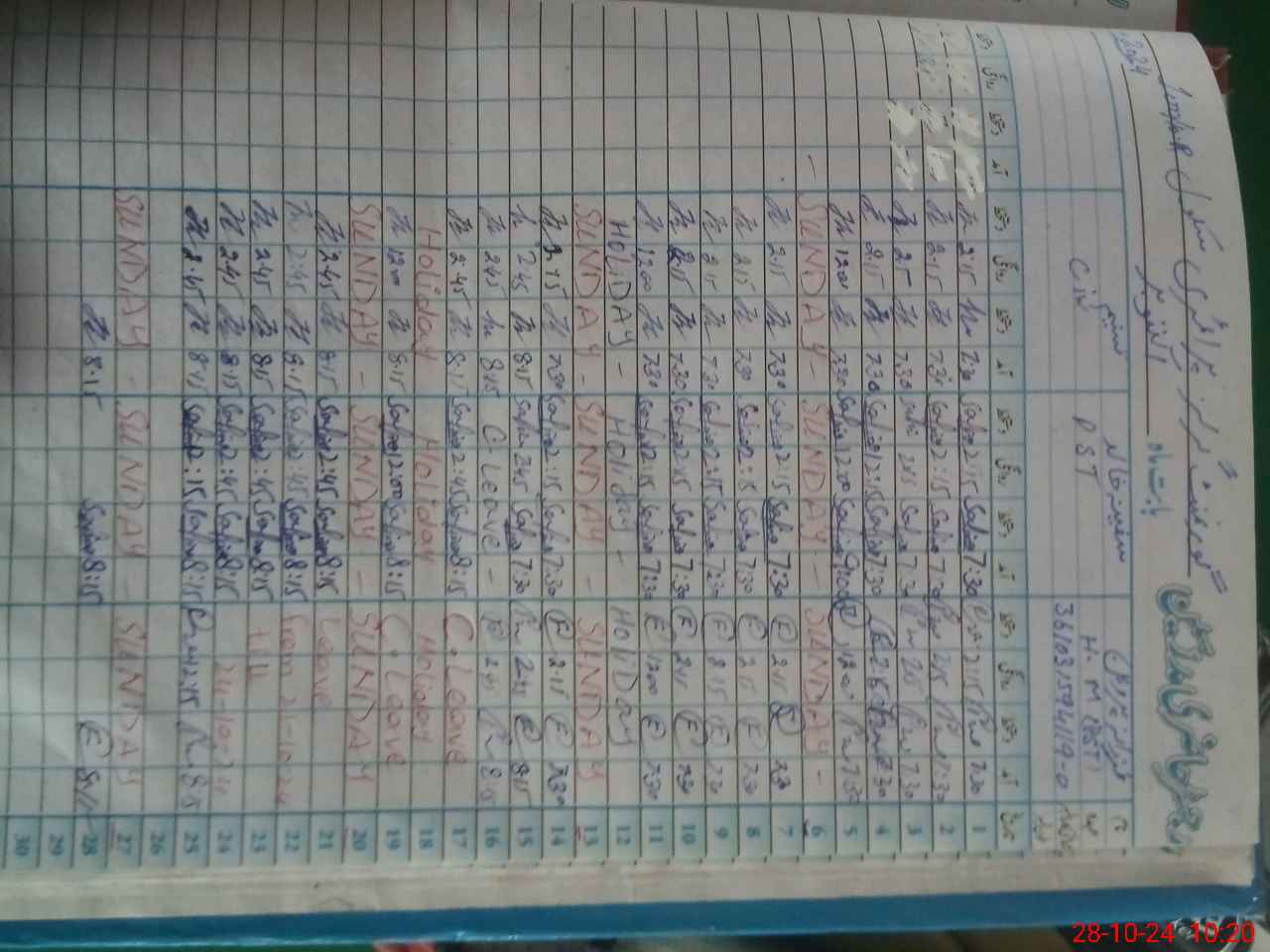 | Leave | Duty | Absent | Maternity | Medical | Ex- Pak |