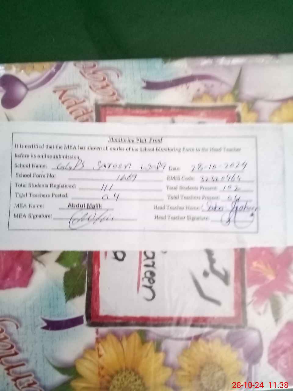| EMIS Code: 32320464 | Name of School: GGPS SAREEN WALA | |||